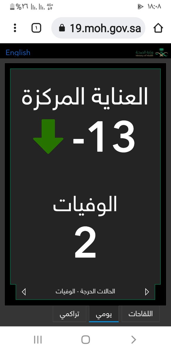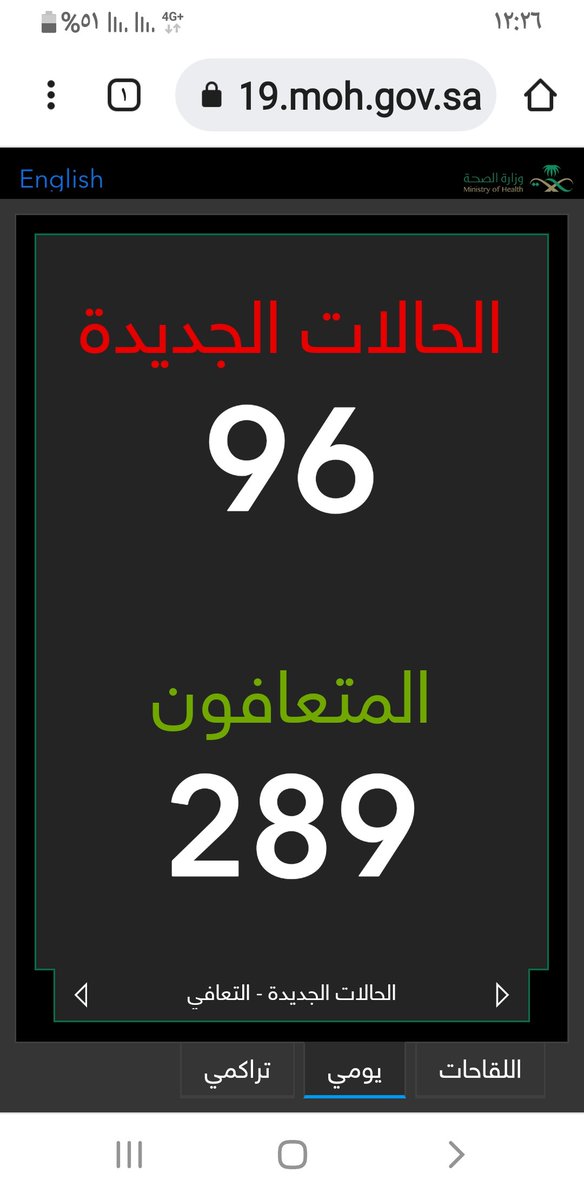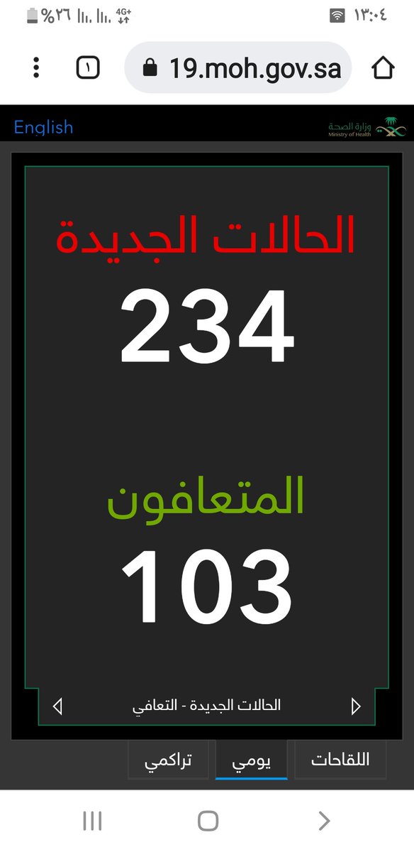#وزارة_الصحة_السعودية تعلن الحالات الجديدة لفيروس #كورونا_الجديد (#كوفيد_19 ) المسجله ليوم السبت 26 /1443/6هـ