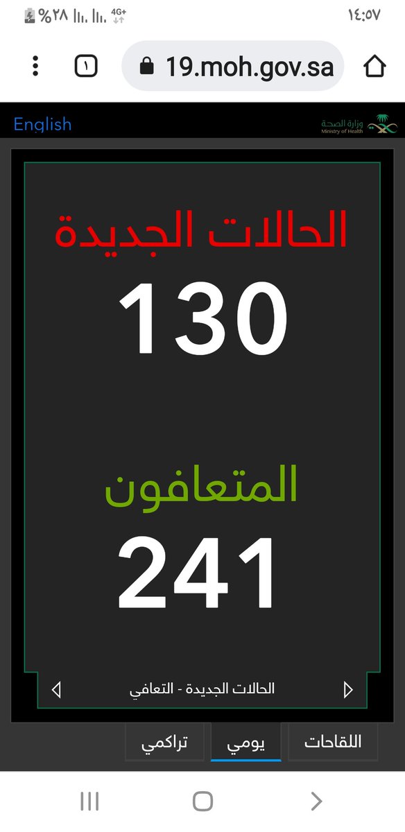 #وزارة_الصحة_السعودية تعلن الحالات الجديدة لفيروس #كورونا_الجديد (#كوفيد_19 ) المسجله ليوم الاثنين 28 /1443/6هـ