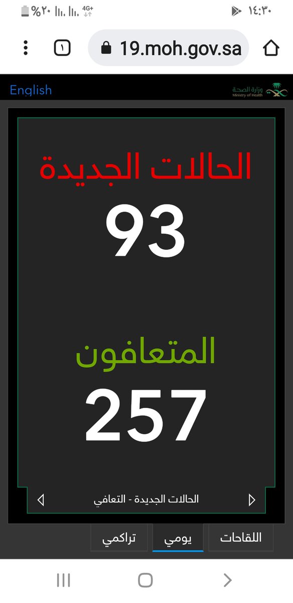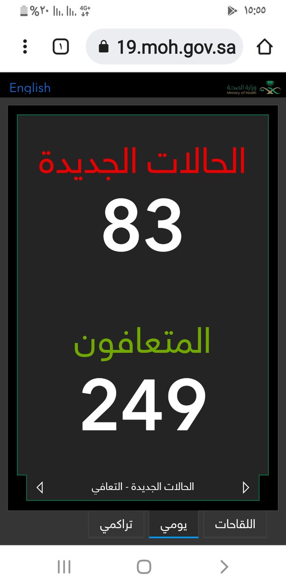 #وزارة_الصحة_السعودية تعلن الحالات الجديدة لفيروس #كورونا_الجديد (#كوفيد_19 ) المسجله ليوم الاحد 20 /1443/6هـ