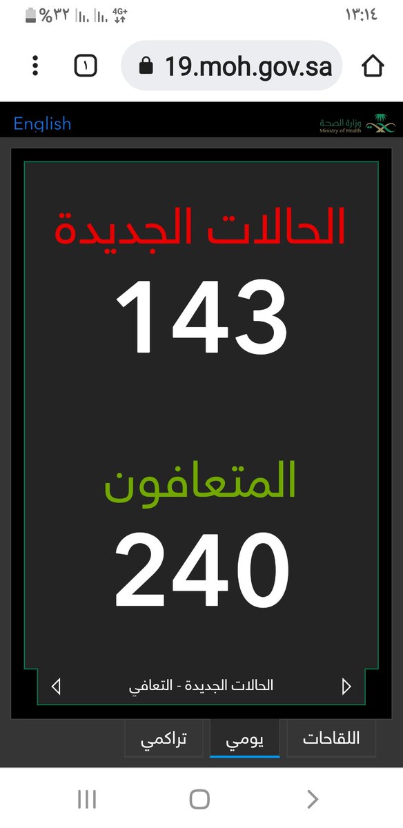 #وزارة_الصحة_السعودية تعلن الحالات الجديدة لفيروس #كورونا_الجديد (#كوفيد_19 ) المسجله ليوم الاثنين 14 /1443/6هـ