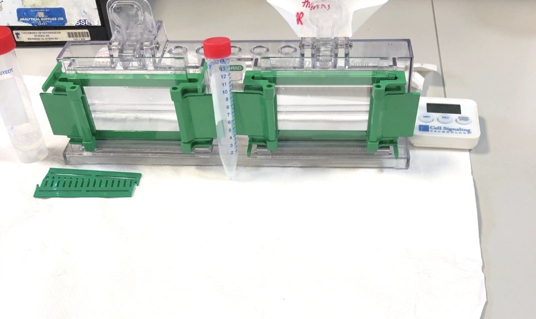 الخطوة الأولى في هذه التجربه هي تحضير عينة البروتينsample preperation. لا بد عينه البروتين تحضر بشكل سليم حتى تحصل على نتيجه صحيحه وواضحه. تحضير هذه العينه يعتمد على عدة عوامل منها: نوع الخليه/النسيج لااختيار المحلول المناسب لاإذابه البروتين، يتبع>>