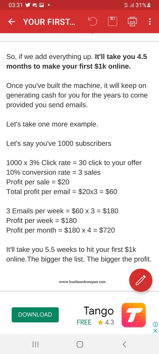 يقول صاحب الكتاب انه يجب أن تبني قائمة بريدية عالاقل من ٥٠٠ ايميل كي تقدم لها فائدة وتبدأ تحقق دخل منها