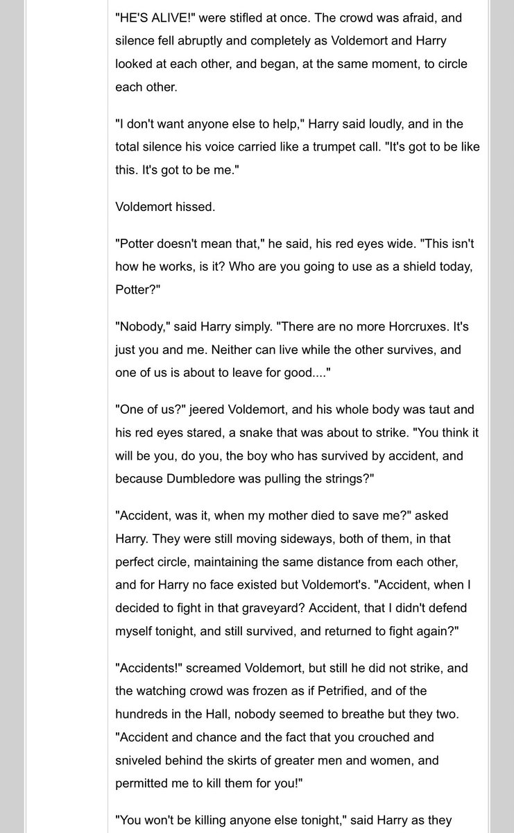 ولو ڤولدمورت مان كبر دماغه كان ممكن الموضوع كله يعدي بلا قيمة، هو الموضوع اتحقق لإن ڤولدمورت صدقه وهي دي الخدعة..