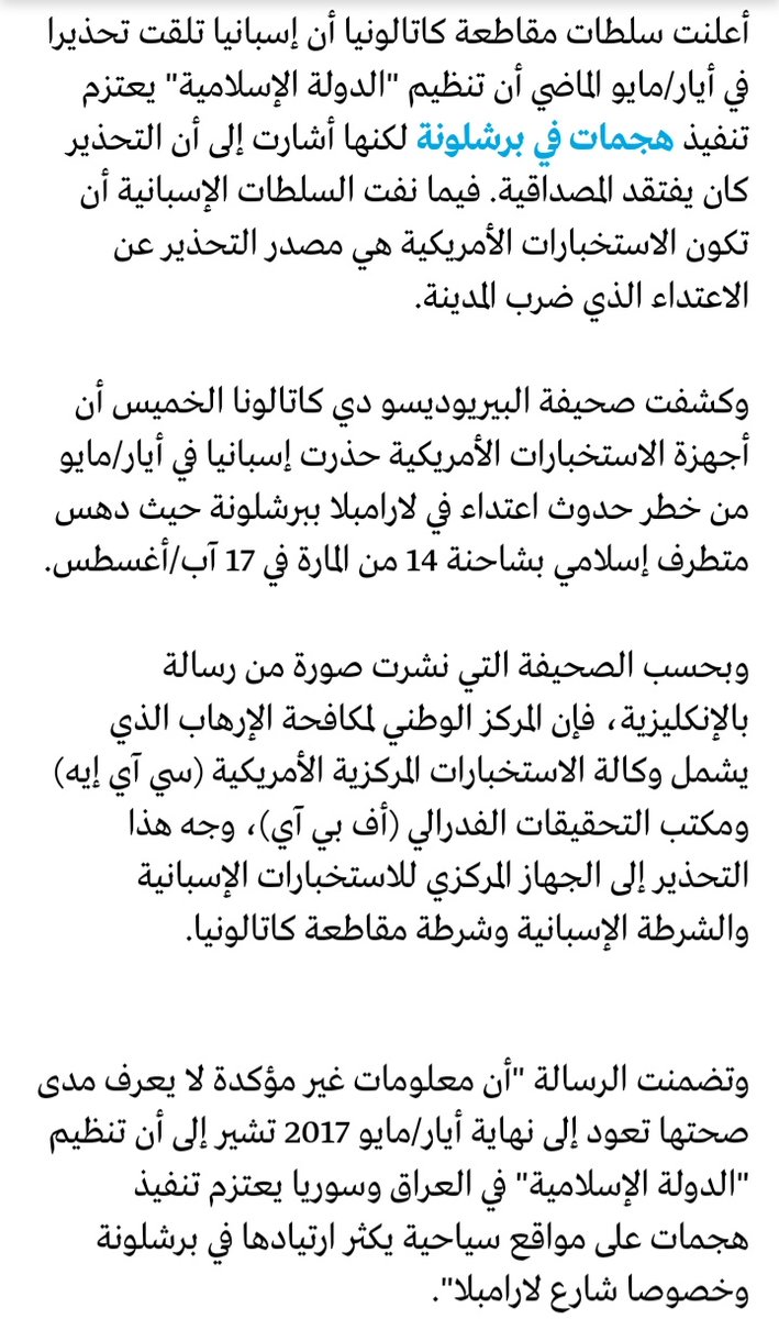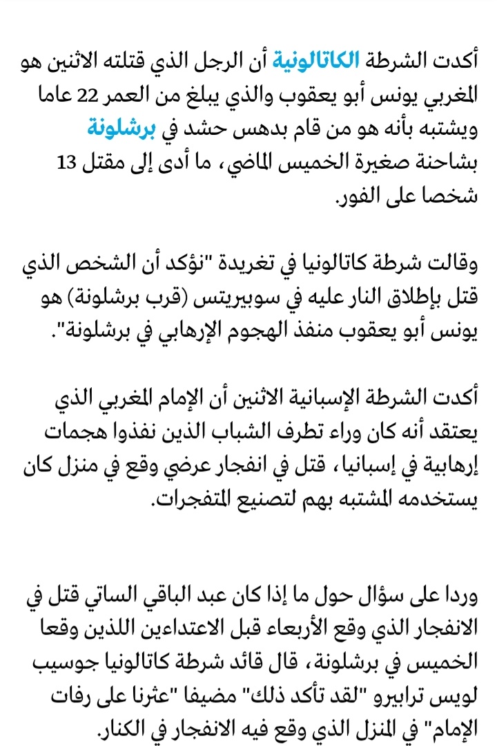 إذن هي عملية من تدبير المخابرات الإسبانية لزعزعة إستقرار إقليم كتالونيا والمنفذ تنظيم د| ع ش
