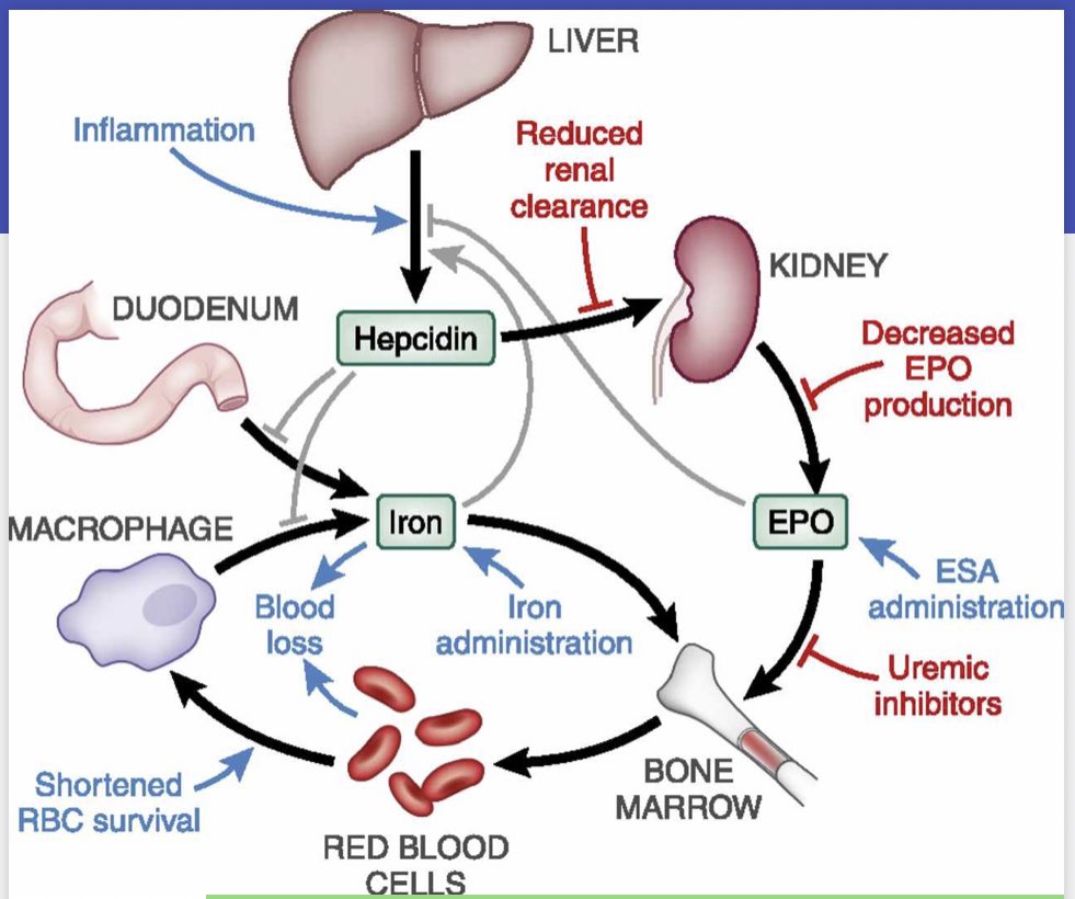 ولا يحدث اي انتاج لكرات الدم الحمراء إلا بوجوده ولا يتم تحفيز انتاج Erythropoietin من الكلية إلا نتيجة لحدوث مايسم ب Hypoxia