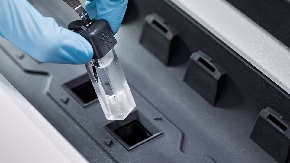 5- وضع الانبوب في كأس او دورق العينة لبدء عملية التحليل.