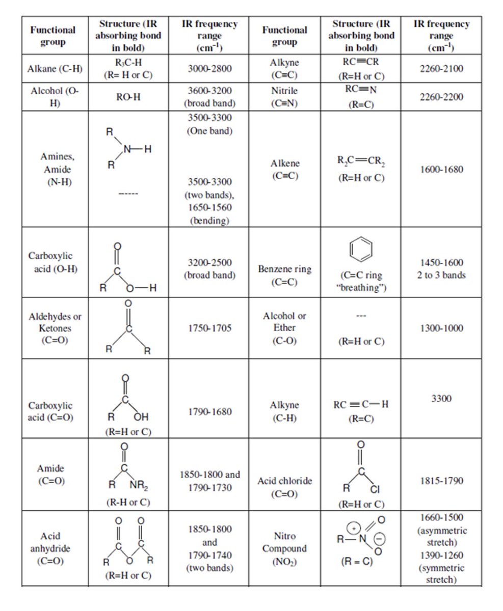 لذلك عند تسليط الأشعة على العينة يقوم الجهاز بقياس التردد الذي تسبب في تمدد الرابطة ومن خلالها يتم تحديد أنواع الروابط فبالتالي يتم تحديد المجموعات الوظيفية في العينة.