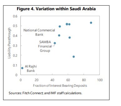 تاريخيا البنوك السعودية أكثر حساسية وأسرع في تمرير ارتفاعات أسعار الفائدة على الدولار من الانخفاضات.