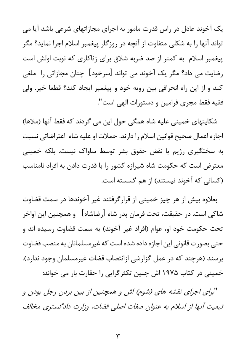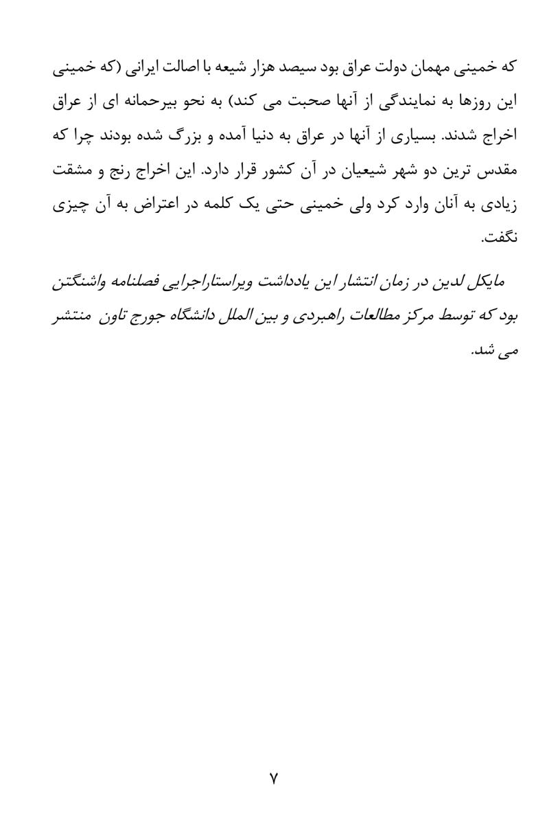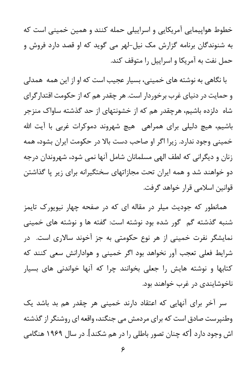 پی نوشت۱: مایکل لدین درباره داستان این مقاله می گوید بعد از بالا گرفتن تبلیغات رسانه ها درباره خمینی با کمی جستجو بالاخره کتابهای او را در کتابخانه کنگره یافتیم و با کمک مترجم آنها را خواندم و بعنوان یک آکادمسین درباره تاریخ فاشیسم، از تشابهات شگفت زده شدم.