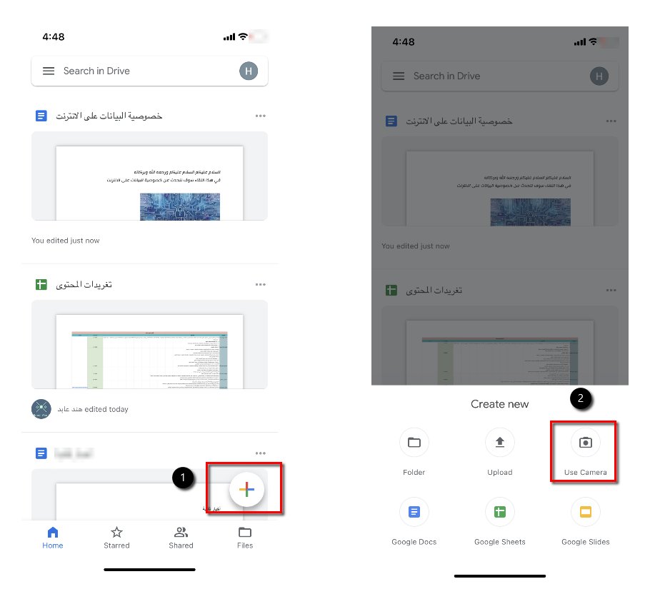 4⃣ إمكانية عمل مسح ضوئي لأي ملف ورقي بواسطة تطبيق الهاتف الذكي وحفظه كملف PDf ويتم تخزينه على Google drive