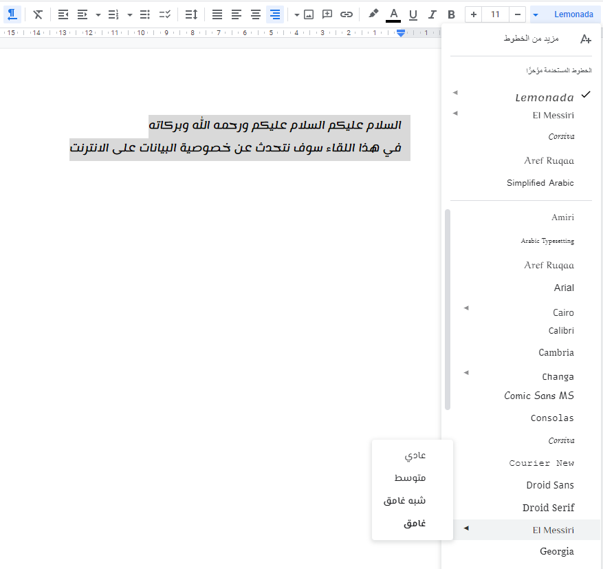 6⃣ يوفر خيارات عديدة لأنوع الخطوط العربية كما يمكنك إضافة المزيد من الخطوط