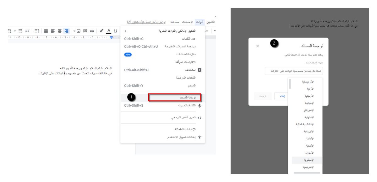 8⃣ ترجمة كامل المستند إلى أي لغة أخرى تريدها وحفظ الملف المترجم كملف مستقل