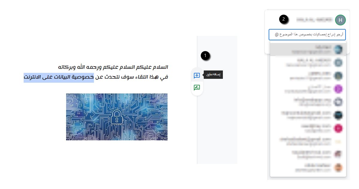 🔟 إضافة تعليق على جزء معين من المستند مع ذكر عنوان البريد للشخص الذي تريد مشاركة التعليق معه