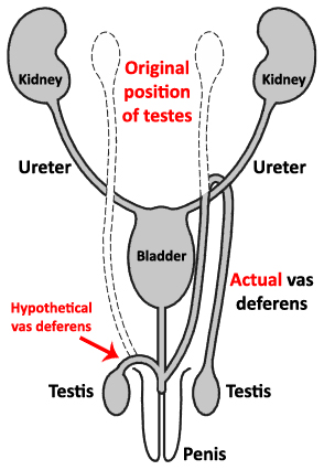 أما المريض فلا يعرف إلا فتحة خروج الدم . والعلم الحديث اكتشف أن المكان الأصلى للخصية فى بداية تكوين الجنين يوجد في أعلى البطن بين الصلب ( العمود الفقرى ) والترائب ( الضلوع ) ثم تنزل الخصية إلى كيس الصفن ومعها عروقها المغذية التى تتصل مباشرة بأعلى البطن وليس بمنطقة الحوض كباقى 👇