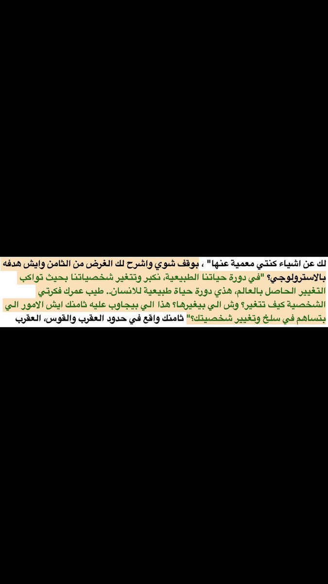 هذا فقط ما يقارب ٥٪ من ما يحمله مستند التحليل، و ما خفي أعظم و أعظم! اذًا هل تشوقت لإمتلاك مستندًا خاصًا فيك؟ يتمحور فقط حول تفاصيلك أنت ومواقعك أنت؟ راسلنا على الخاص لتحظى به 💜