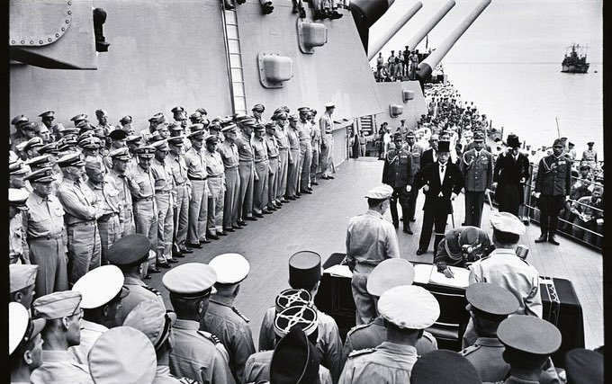 في 15اغسطس لعام1945 استسلمت اليابان بعد إلقاء امريكا القنابل الذرية على هيروشيما وناغازاكي،رفض"تاكيجيرو" الاستسلام وطلب في الاستمرار الحرب لتحقيق نصر يدونه التاريخ،ولكن لم يستجيب احد لكلامه،بعده بيوم قرار تاكيجيرو الانتحار بطريقة"هارا كيري" يستخدمها الساموراي عندما ينهزمون.
