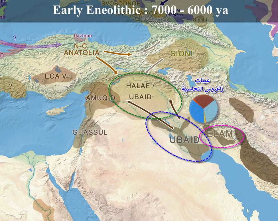 6) الخلاصة هنا أن عينات زاغروس النحاسية تعتبر أفضل وسيط جينومي لاستكشاف أصول ثقافات وحضارات الرافدين (العُبيد، حلف)