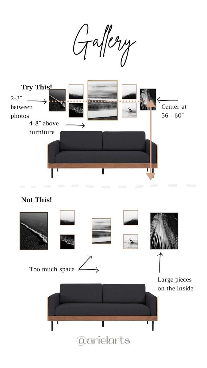 ١-نبتعد عن الفراغات الكثيره سواء بين اللوحات او بإرتفاعات اللوح لانها مرعجة للعين وممكن تقلب التصميم من ايجابي الى سلبي