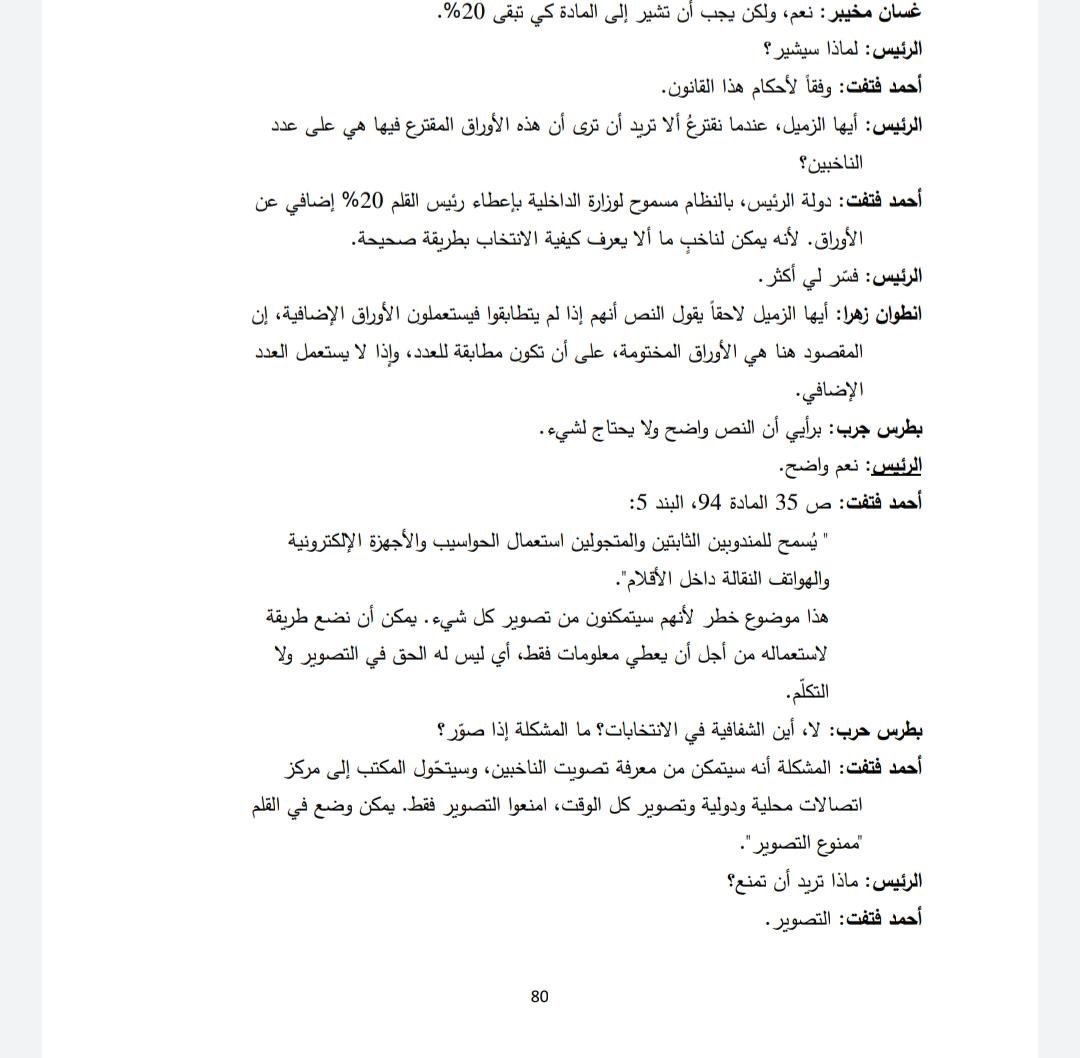 ١-كل النواب من مختلف الكتل سجلت اعتراضها على بعض المواد من القانون، مثلا اكرم شهيب سجل اعتراضه على الدائرة ١٦،