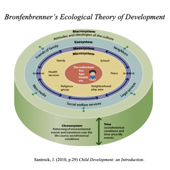 يتكون هذا النظام من السياق الثقافي الذي يقيم فيه الطفل، كما ويشمل العوامل الاجتماعية والاقتصادية، وهي عوامل لا يمكن التحكم فيها بشكل فردي ولكن لها تأثير كبير على الطفل.