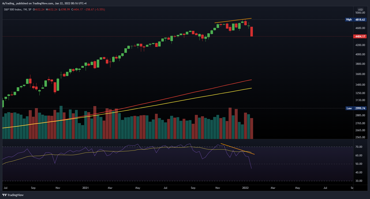 فالبداية احب اوضح ان الثريد هذا نوعا ما استكمالا لسلسلة الهبوط اللي بديتها فالتغريدة المرفقة ولكن على فريمات اكبر ولا يعتمد على التحليل الفني فقط وانما نظرة شاملة للسوق وعلاقته بالاسواق الاخرى: