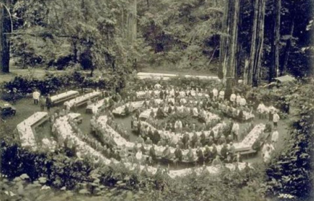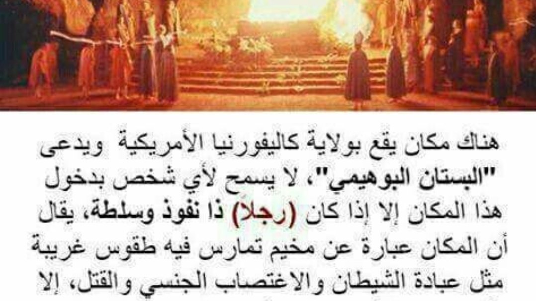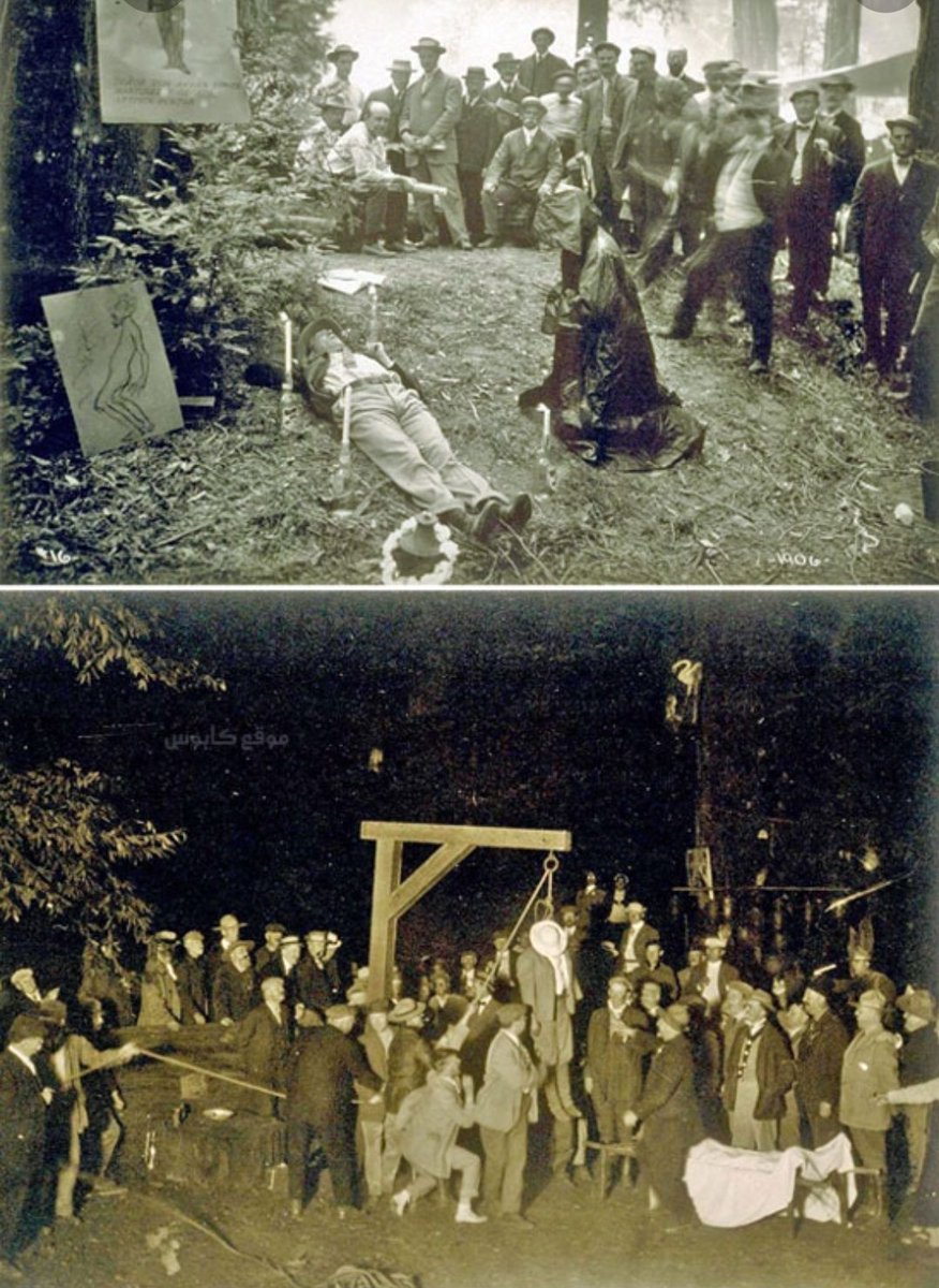 يوافقون على ارتداء ملابس غريبة تشبه ملابس الكهنة القدماء وهم يحملون المشاعل ويترنمون بالأغاني ذات الطابع الوثني مجتمعين حول صنم على هيئة بومة عملاقة