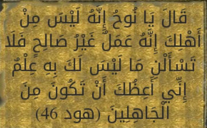 18/👈سادساً : عملٌ غير صالح : في الآية الكريمة :(( إنه ليس من اهلك إنه عمل غير صالِح))
