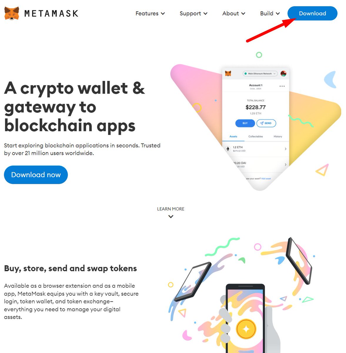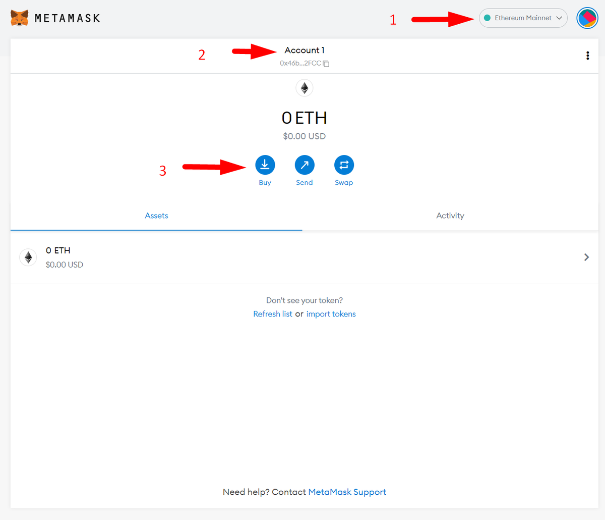 - القسم الاول ( الحالي ) لمحفظة Metamask ومنصة