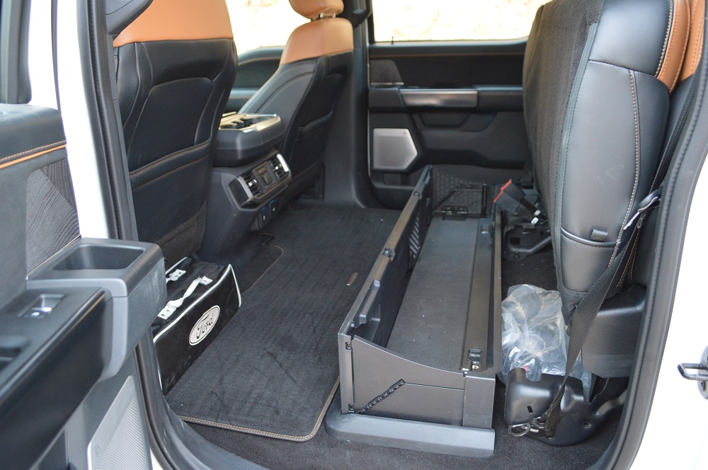من ضمن حركات فورد انك تقدر تطوي القير ، وتقلب الدرج الي بالنص الى طاولة عشان توفر لك مساحة عمل بين المقاعد