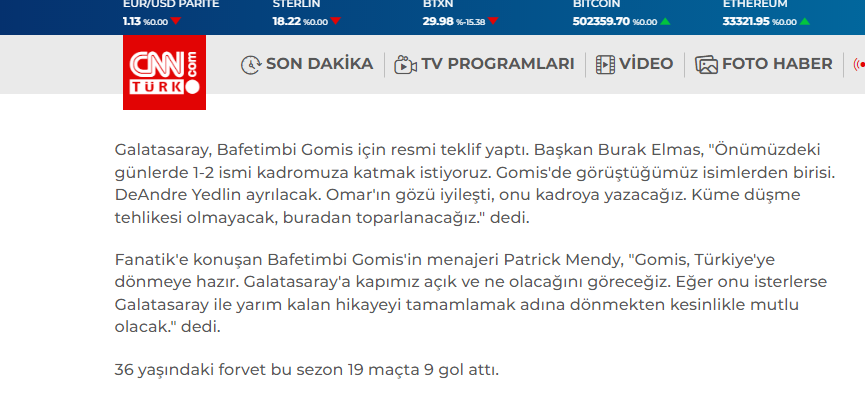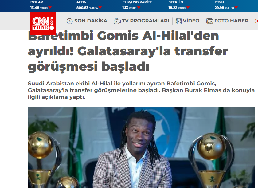 💥💥 شبكة "cnnturk" التركية: "رئيس غلطة سراي بوراك إلماس يؤكد وجود المفاوضات مع غوميز بعد رحيله عن #الهلال. باتريك ميندي وكيل اللاعب قال "غوميز مستعد للعودة والباب مفتوح لنادي غلطة سراي وسنرى ما سيحدث. إذا أرادوا ذلك فسيكون سعيدًا تمامًا بالعودة لإكمال ما لم يكتمل مع غلطة سراي".