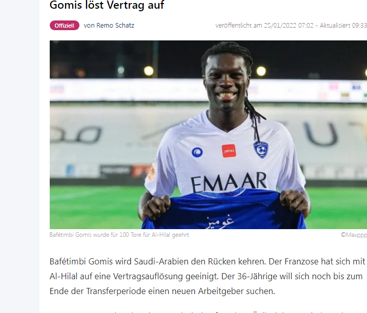 💥💥 شبكة "fussballtransfers" الألمانية: "بافتيمبي جوميز يغادر السعودية بعد إنهاء عقده مع #الهلال بالتراضي. هناك اهتمام من فنربخشة بضمه كما يُخطط غلطة سراي لإعادة المهاجم إلى صفوف الفريق الذي أحرز معه في موسم 2017/18 32 هدفا في 42 مباراة. بالإضافة إلى ذلك يريد الريان القطري ضمه".