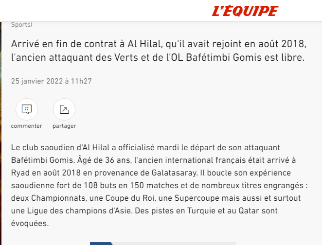 💥💥 صحيفة "ليكيب" الفرنسية: "بافتيمبي جوميز يُنهي تجربته الرائعة مع #الهلال برصيد 108 هدف في 150 مباراة.. حصد اللاعب العديد من الألقاب: بطولتان في الدوري السعودي، وكأس الملك، وكأس السوبر أيضًا، وقبل كل شيء دوري أبطال آسيا مرتين".
