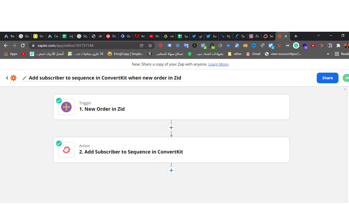 ثانياً: نربط أداة التسويق بالإيميل مع zapier أيضا