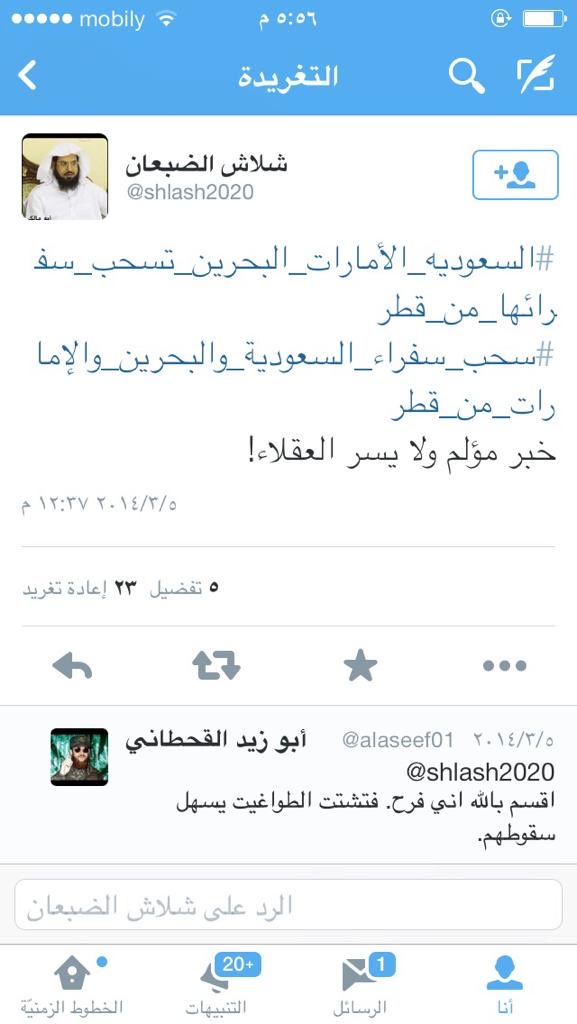 لا اعلم كيف يتجرأ #شلاش_الضبعان ان يقول عن قرار دول ذات سيادة انه قرار لا يرضي العقلاء وماذا يريد من هذا التأليب