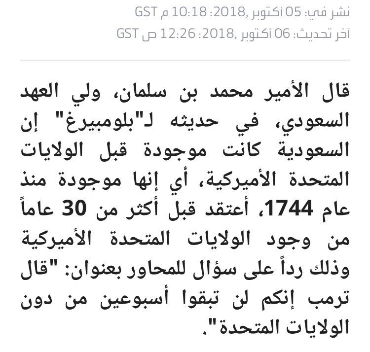 إن السعودية كانت موجودة قبل الولايات المتحدة الأميركية أي إنها موجودة منذ عام 1744 قبل أكثر من 30 عاماً من وجود الولايات المتحدة الأميركية