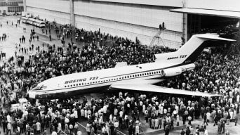 5- طائرة البوينج B727 الكلاسيكية والتي عملت في الفترة ما بين 1962 حتى 1984 وكانت النواة الأولى لطائرة B737 فيما بعد ، بيع منها اكثر من 1800 طائرة.