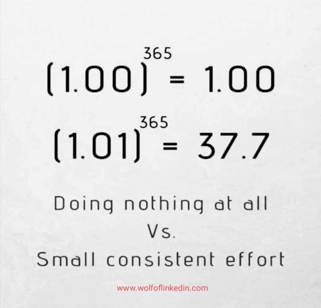 ٣/ الخلاصه ف النقطه دي ان مفيش اي نجاح يذكر او حاجه واو كانت نتيجه Massive action كله بيلف ويرجع لحته الconsistency وال1% improvement