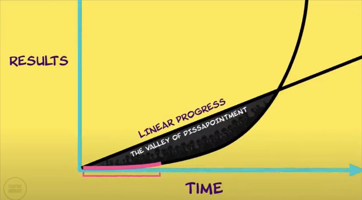 ٤/ سعات كتير احنا بنكون معتقدين ان الprogress هيكون شكله منحنى خطي بيطور مع الوقت ، الي هو انا النهارده هكون احسن من امبارح وبكرا هكون احسن من النهارده