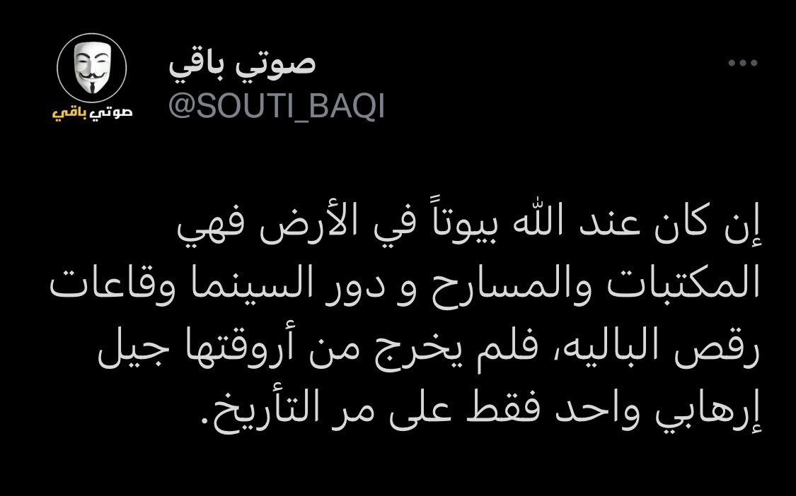 الإرهابي ستالين الذي قتل ٦ مليون نسمة، هو عاشق للاوبرا والباليه. و ونستون تشرتشل الإرهابي رجل الحرب الذي تسبب في مجاعة البنغال "٣ مليون انسان" له عشرات المؤلفات ككاتب و روائي، بالإضافة إلى كونه رسام مثل الإرهابيين هتلر و جورج بوش المعروف عنه تفاهته و بعده عن أي شي راقي في الحياة!