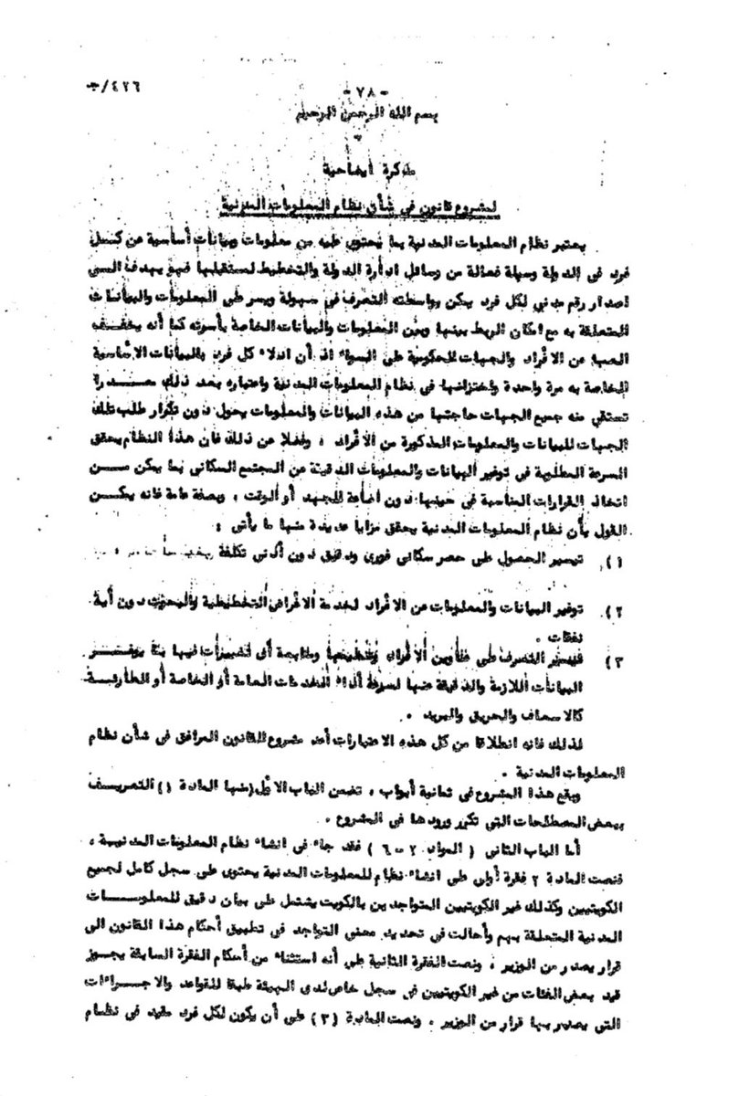 مقتطفات متعلقة بتطبيق قانون المعلومات المدنية في أواخر عام 1988 توافقاً مع الخطة "الخمسية" المعدة مسبقاً و لقد تم فصل #البدون من الإحصاء كمواطنين قبيل هذا الأمر..