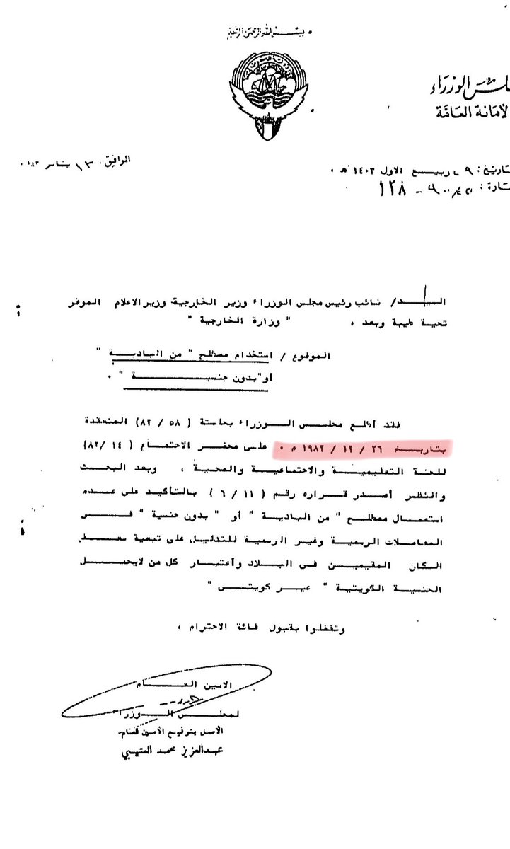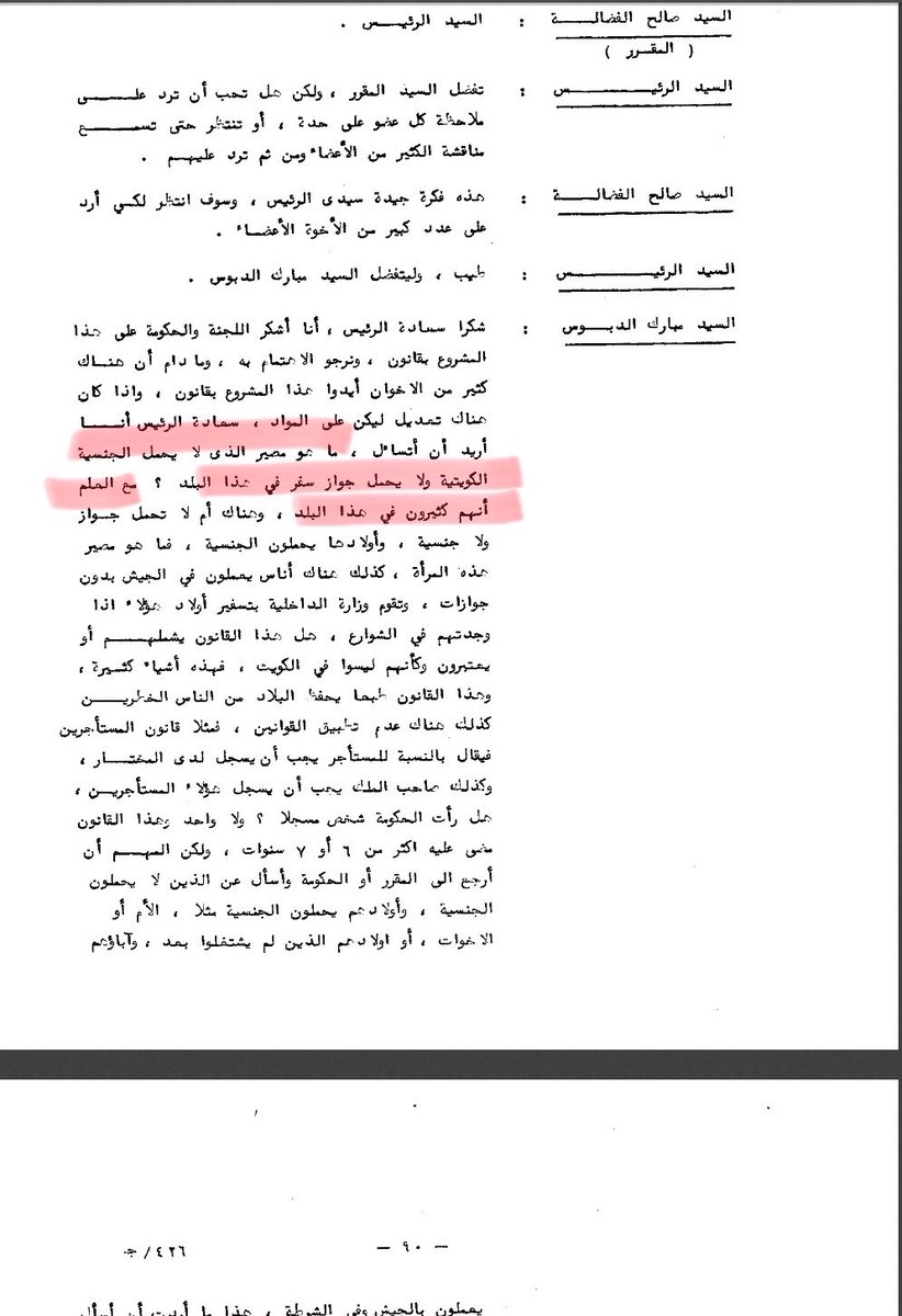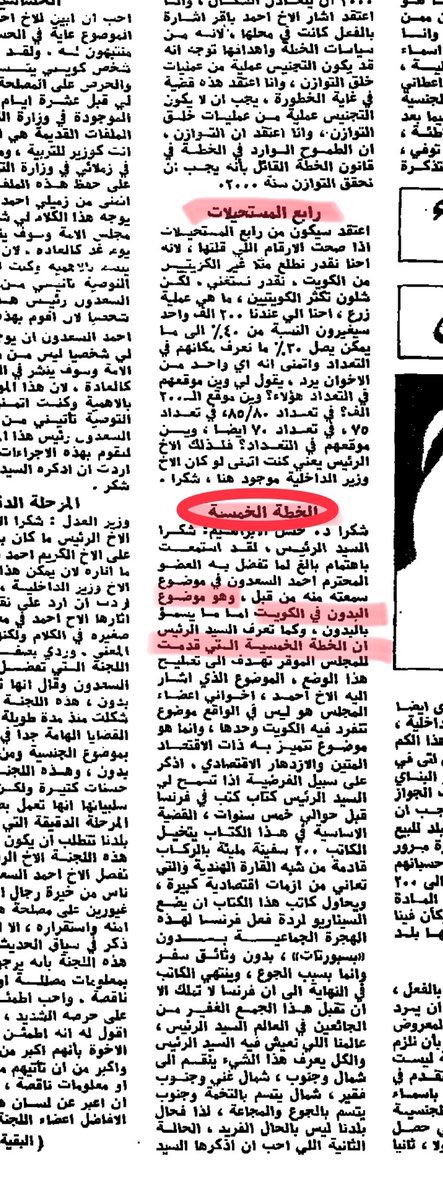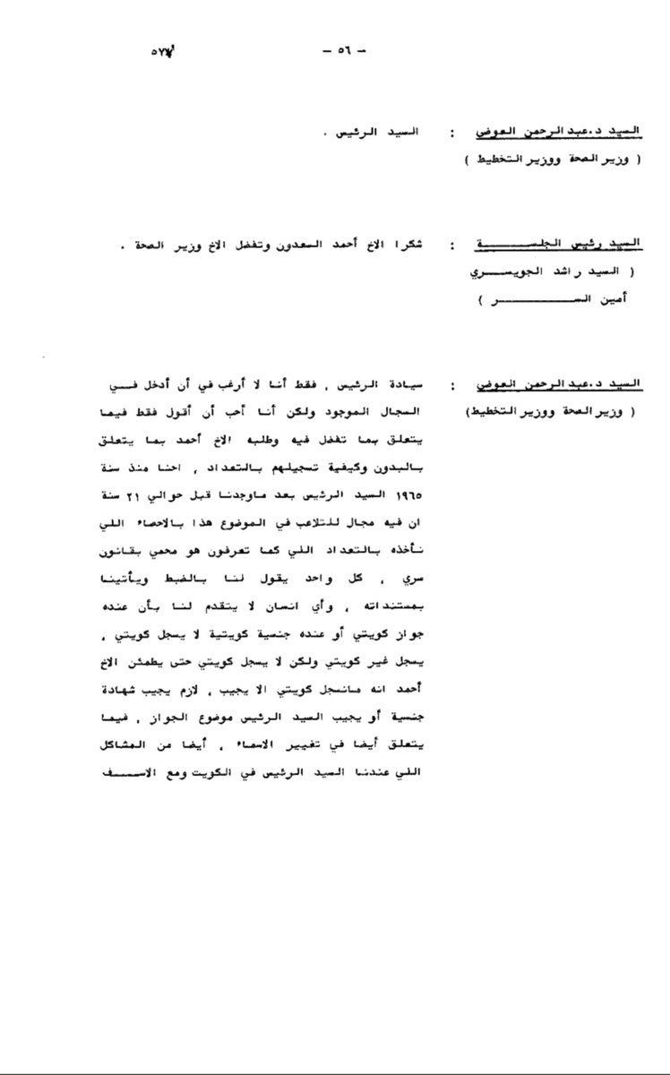 و لقد تم مناقشتها بشكل رسمي في هذه الجلسة من قبل وزير التربية آنذاك الدكتور حسن الابراهيم و من ثم كانت تلك هي نقطة البداية الفعلية في بدأ عملية سلب حقوق #البدون بدأ من إخراجهم من أعمالهم و معاملتهم كغير كويتيين..