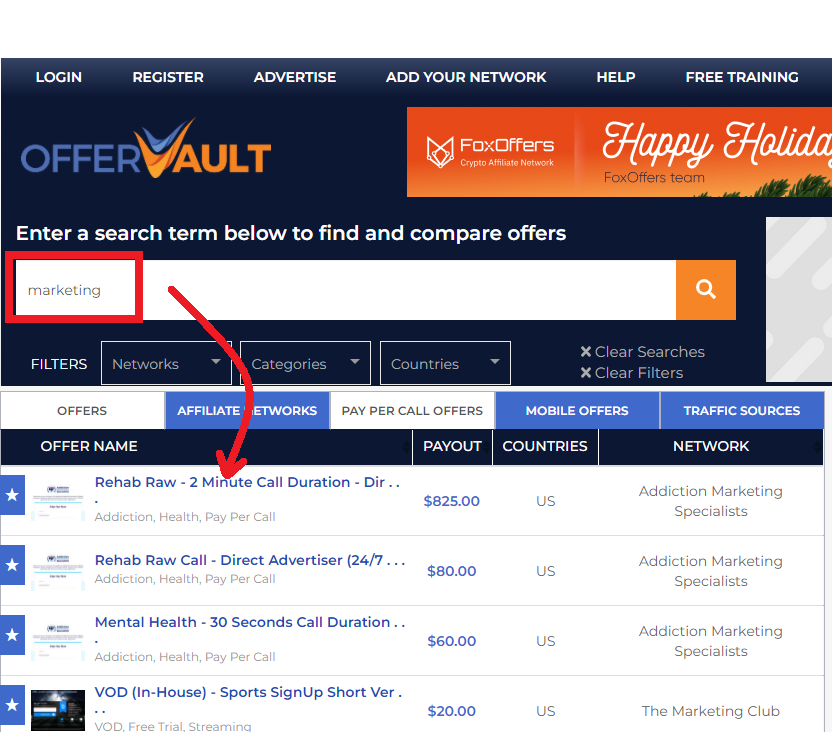 لنذهب إلى @OfferVault والعثور على بعض البرامج المتعلقة بمجال "المحتوى" أو التسويق مثلا والتي تعتبر ذات قيمة لصناع المحتوى ؟
