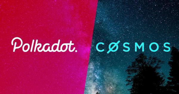 يشبه Cosmos مشروع Polkadot إلى حد كبير الذي يسعى أيضا إلى إنشاء نظام بيئي لشبكات Blockchain القابلة للتشغيل البيني ومع ذلك على عكس Polkadot يعطي Cosmos الأولوية لسيادة Blockchains المستقلة مما يعني أنه يجب عليهم تأمين أنفسهم ويكون لديهم حوكمة خاصة بهم وتشغيل أدوات تحقق الخاصة بهم