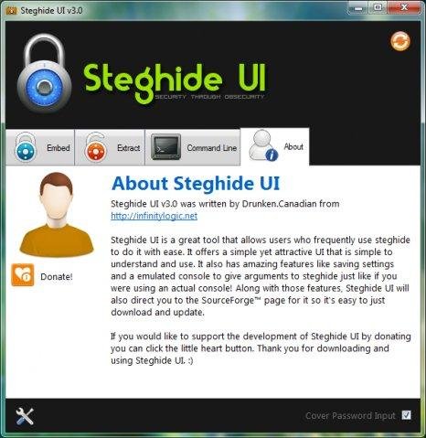 الاداة تسمح للمستخدم بكل شيء STEGHIDE ولكنها مع واجهة المستخدم الرسومية سهلة الاستخدام لطيفة.