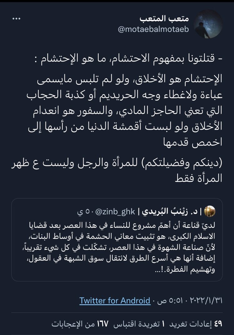 الاحتشام؟ لاعلاقة له باللباس وبالتالي تعرّي كما تحبين ونُحب، النهي عن اجتناب الخمر لايعني تحريمها وبالتالي هيا نسكر سويا.