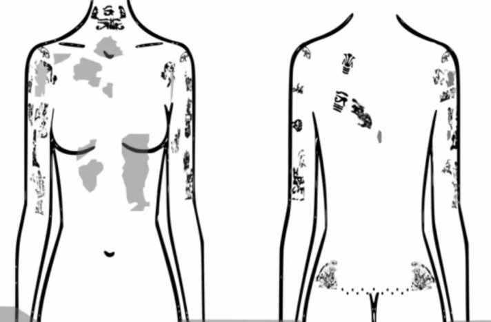 والثعابين أو العلامات الشبيهة بالحروف الهيروغليفية وهي نفس العلامات التي وشم بها المصريين أنفسهم كذلك والصفحات من 40 الي 70 تحمل وصفاً تفصيلياً للملابس التقليدية المصرية