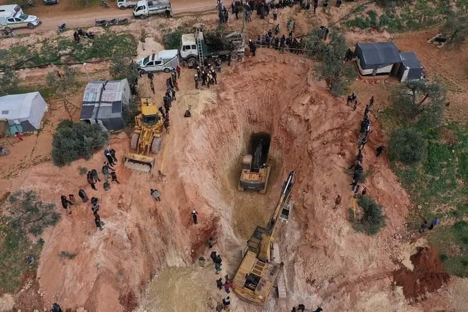 مازال الحفر مستمر ومازال الطفل ريان حي يرزق وياكل وياشرب.