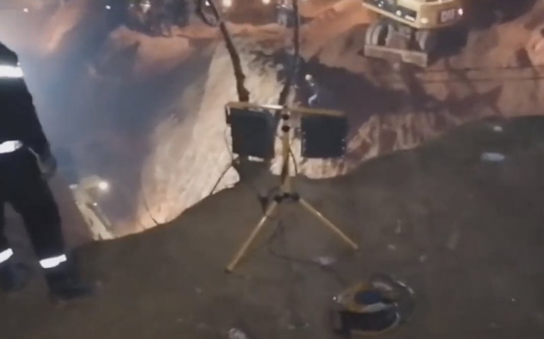 تم اعطاء الاوامر من السلطات بالحفر بحذر شديد صورة علوية للمدخل السفلي الذي يتم حفره الان بحذر شديد، هذا هو المدخل المحتمل لفريق الانقاذ الرئيسي.