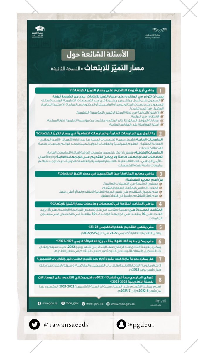 كما هو واضح في التغريدة السابقة، البرنامج المُتاح حاليًا وعلى مدار العام هو #مسار_التميز_للإبتعاث