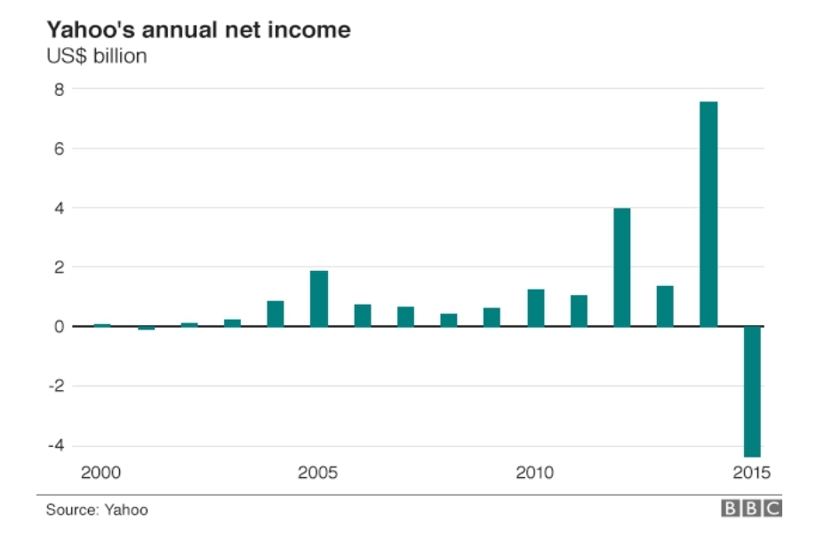 وصلت قيمة ياهو إلى ١٢٥ مليار دولار في أحد الأيام، لكنها بيعت إلى فيرايزون ب٥ مليار فقط. ما الذي حدث؟